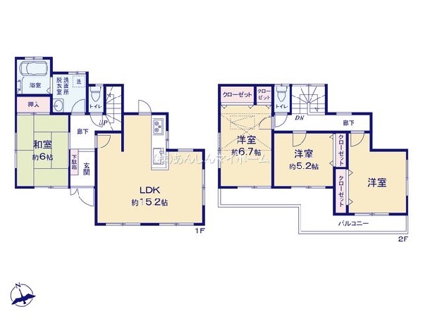 | 設備 | 公営水道、公共下水、駐車場1台、閑静な住宅地、都市近郊、市街地が近い、2沿線以上利用可、中学校徒歩10分以内、公園5分以内、コンビニ5分以内、I型キッチン、ユニットバス、浴室に窓、バルコニー、南面バルコニー、内装リフォーム、外装リフォーム、2階建、採光2面、南西向き、クローゼット、収納、下駄箱、全居室収納、火災警報器(報知機)、陽当り良好 |
