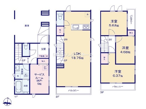 川崎市中原区上平間 新築一戸建 7090万円 B号棟